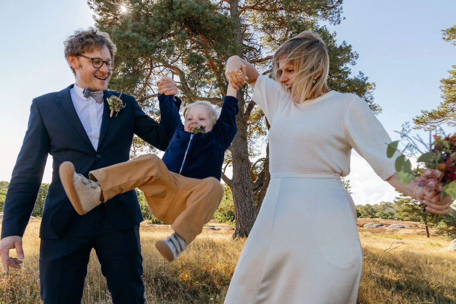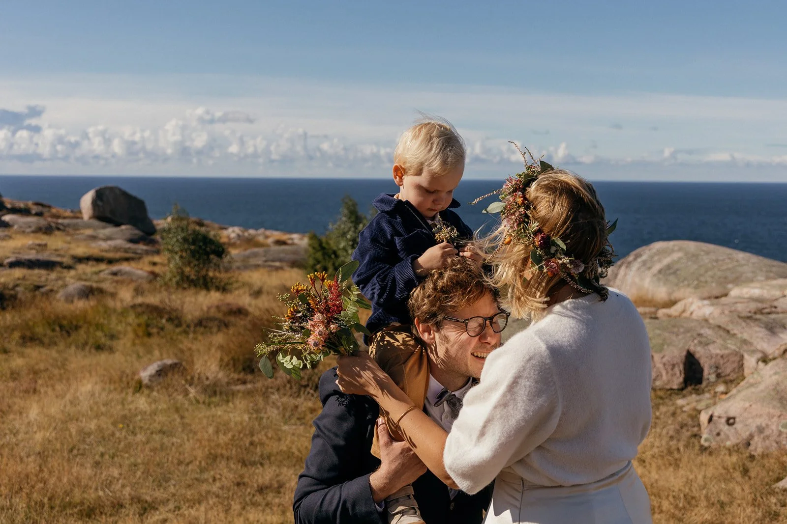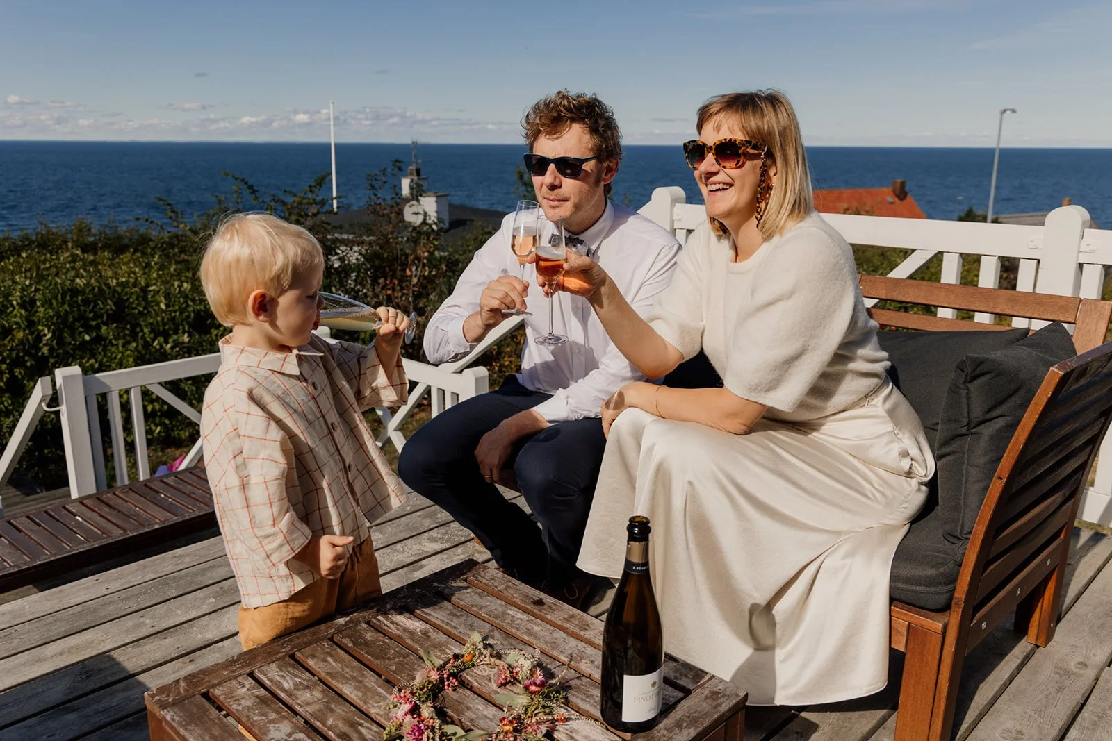 Sofie & Max came to Bornholm with their 3 year old son Hugo for an informal post wedding location shoot. When toddlers come with the package, you never quite know how things are gonna go… I like to work on the child’s premises and adjust to their pace and mood. A great advantage is to bring them out in nature where they can run freely amongst animals is possible…
